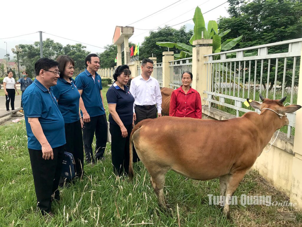 Gia đình anh Nguyễn Văn Sỹ, người khuyết tật thôn Nhân Thọ 1, xã Yên Nguyên (Chiêm Hoá) nhận hỗ trợ bò sinh sản. Đoàn đã tặng 30 con bò