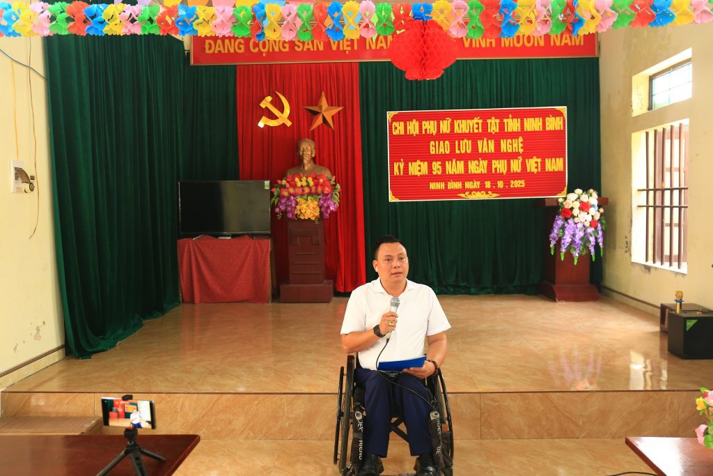 Sáng ngày 18/10, tại phường Hoa Lư, tỉnh Ninh Bình, Chi hội Phụ nữ khuyết tật tỉnh Ninh Bình đã tổ chức Lễ kỷ niệm 95 năm Ngày Phụ nữ Việt Nam (20/10/1930 – 20/10/2025). Dự buổi lễ có ông Trần Quang Dũng, Chủ tịch Hội Người khuyết tật tỉnh Hà Nam (cũ); Bà Phạm Thị Hà, Chủ tịch Hội Người khuyết tật tỉnh Ninh Bình (cũ); ông Bùi Trọng Kỳ, Nguyên Chủ tịch Hội Chữ thập đỏ tỉnh Ninh Bình, cùng toàn thể các hội viên đang sinh hoạt trong Chi hội.