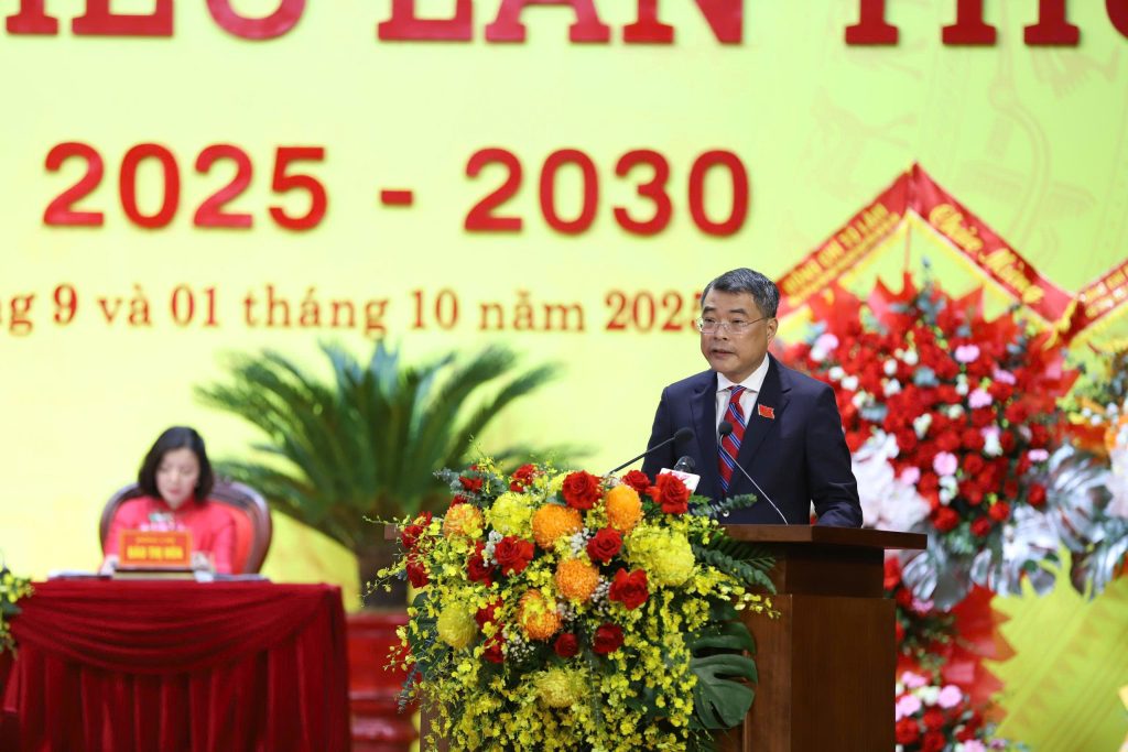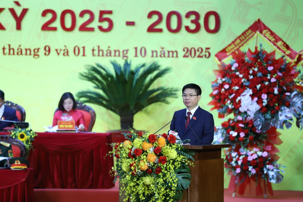 Bí thư Tỉnh ủy Trương Quốc Huy cũng điểm lại những thành tựu nổi bật của nhiệm kỳ 2020 – 2025 và mục tiêu hướng trong thời gian tới. Dù đối mặt với nhiều khó khăn, thách thức, nhất là tác động của đại dịch COVID-19, song nhờ sự lãnh đạo sát sao của Trung ương và sự đồng lòng của toàn hệ thống chính trị, Ninh Bình đã duy trì mức tăng trưởng GRDP bình quân 9,26%/năm; quy mô nền kinh tế đạt 352.164 tỷ đồng; cơ cấu kinh tế chuyển dịch theo hướng công nghiệp hóa, hiện đại hóa, gắn với chuyển đổi số và phát triển xanh. Các mục tiêu xây dựng nông thôn mới hoàn thành trước thời hạn, đời sống nhân dân được cải thiện rõ rệt, quốc phòng – an ninh giữ vững, niềm tin của nhân dân tiếp tục được củng cố.