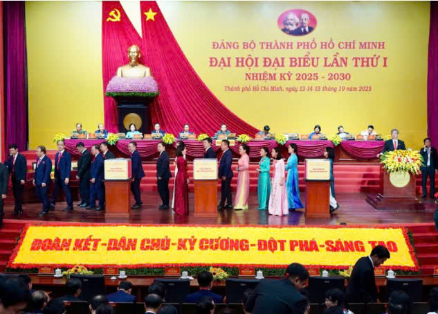Sau ba ngày làm việc khẩn trương, nghiêm túc và dân chủ, sáng 15/10, Đại hội đại biểu Đảng bộ TP. Hồ Chí Minh lần thứ I, nhiệm kỳ 2025–2030 đã thành công rực rỡ, hoàn thành toàn bộ chương trình, mở ra giai đoạn phát triển mới với tầm vóc, quy mô và khát vọng lớn cho thành phố mang tên Bác.