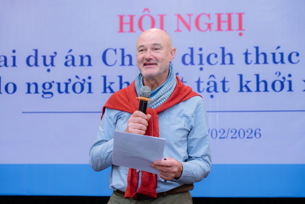 Phát biểu tại hội nghị, ông Bruno Leclercq, Trưởng đại diện Tổ chức Humanity & Inclusion tại Việt Nam, nhấn mạnh tinh thần cốt lõi của dự án MIC là trao quyền cho người khuyết tật tham gia đầy đủ vào toàn bộ chu trình dự án – từ khâu thiết kế, triển khai đến giám sát và đánh giá.