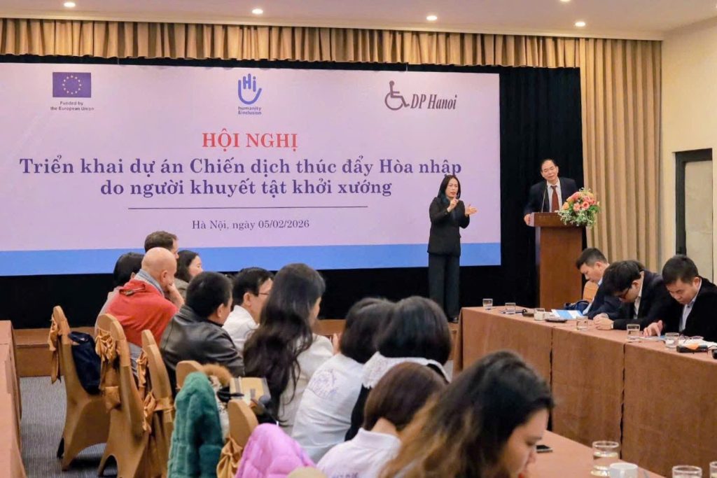 Ngày 05/02/2026, tại Hội trường Ba Đình (Khách sạn Cầu Giấy, Hà Nội), Hội Người khuyết tật thành phố Hà Nội (DP Hà Nội) phối hợp với Tổ chức Humanity & Inclusion (HI) và Phái đoàn Liên minh châu Âu (EU) tại Việt Nam tổ chức Hội nghị triển khai Dự án “Chiến dịch thúc đẩy hòa nhập do người khuyết tật khởi xướng” (MIC).