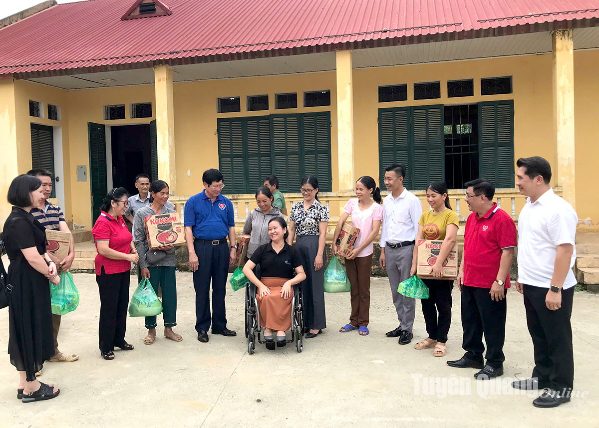 Tặng quà người khuyết tật ảnh hưởng bão Yagi xã Lý Nhân, huyện Chiêm Hóa.
