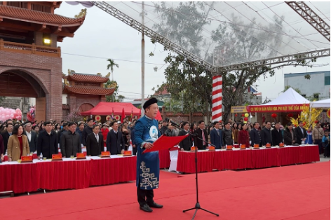 Phó chủ tịch UBND Thành phố Thủy Nguyên Uông Minh Long đọc chúc văn khai hội.