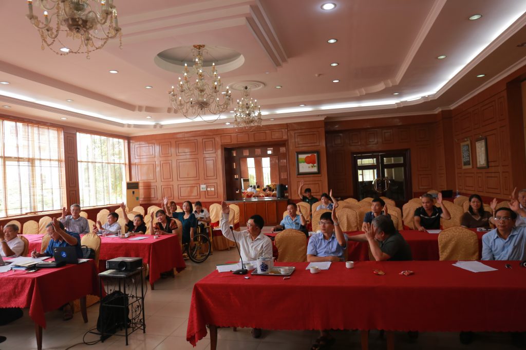 Các đại biểu, biểu quyết, nhất trí thông qua báo cáo sơ kết 6 tháng đầu năm 2025; đồng thời thảo luận, thông qua Nghị quyết hợp nhất Hội NKT ba tỉnh Ninh Bình – Hà Nam – Nam Định