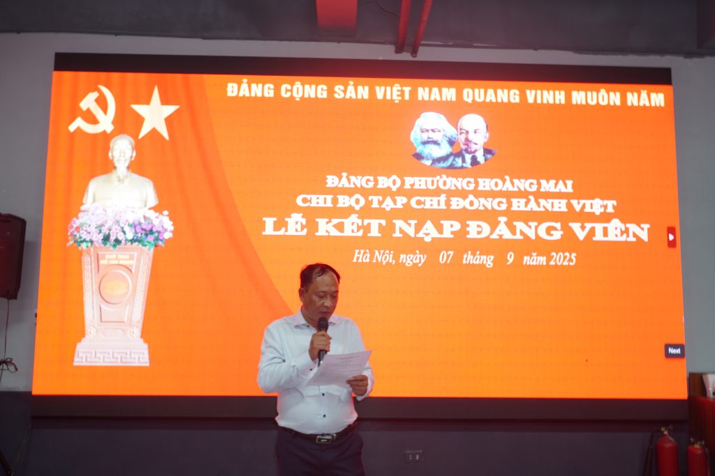 Sáng ngày 07/09/2025, thực hiện theo Quyết định của Đảng ủy Phường Hoàng Mai, Chi bộ Tạp chí đã trang trọng tổ chức Lễ kết nạp Đảng viên cho quần chúng ưu tú Nguyễn Đăng Hoan.