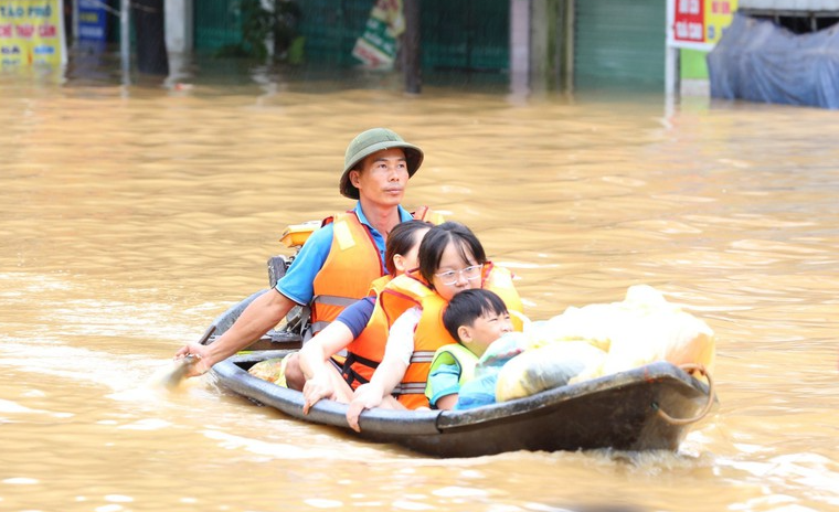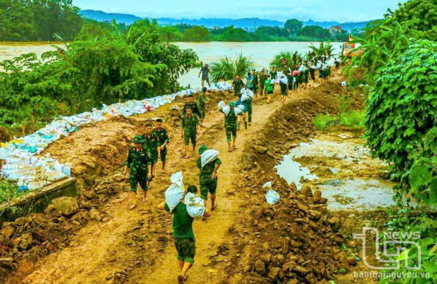 Trong tâm lũ, những người lính, công an, dân quân lại xuất hiện ở nơi hiểm nguy nhất. Tại Thái Nguyên, lực lượng Quân khu 1 và Công an tỉnh hàng trăm lượt xuồng, xe lội nước, phao cứu sinh vượt dòng nước xiết cứu dân. Có chiến sĩ bị thương vẫn ở lại hiện trường “vì dân còn trong vùng ngập”.