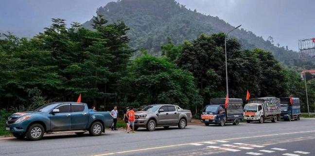 Những đoàn xe nối đuôi nhau đến với bà con vùng lũ