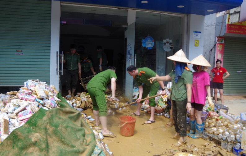 Công an giúp dân dọn dẹp nhà cửa sớm ổn định cuộc sống