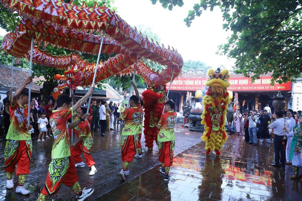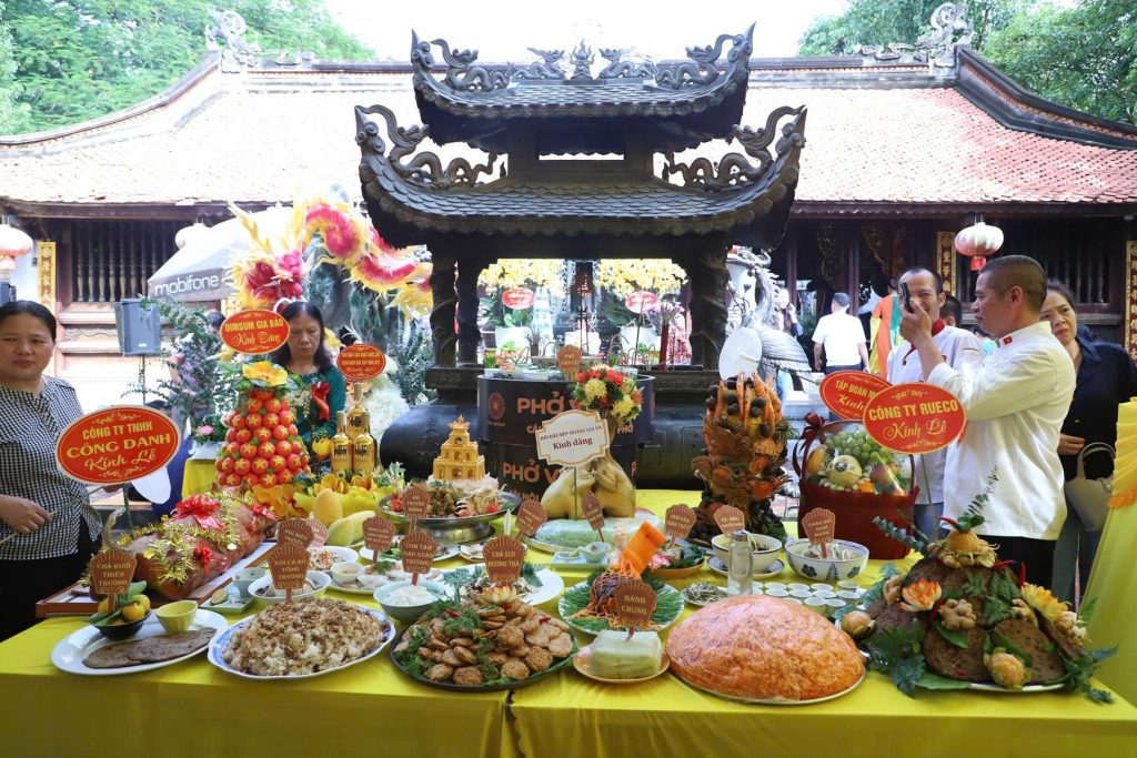 Mâm cỗ dâng Thánh năm nay được chuẩn bị bởi hơn 100 nghệ nhân, là sự kết tinh của bàn tay khéo léo và tấm lòng thành kính. Từ cá úp chậu – món ăn đặc trưng trong lễ giỗ, đến nem Ninh Lộc, chuối om đậu, tất cả đều được chế biến theo công thức truyền thống, mang đậm hương vị đồng quê. Mỗi món ăn, mỗi mâm cỗ không chỉ là nghi lễ dâng Thánh, mà còn là cách người dân gìn giữ và lan tỏa giá trị văn hóa ẩm thực dân gian, đồng thời tạo dấu ấn đặc biệt cho du khách khi tham dự lễ hội.