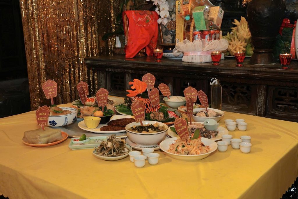Hình ảnh mâm cỗ được các nghệ nhân chuẩn bị dâng đức Thánh Trần.