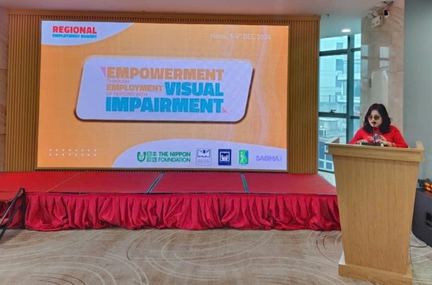 Phát biểu khai mạc Hội thảo, bà Đinh Việt Anh, Phó Chủ tịch Hội Người mù Việt Nam nhấn mạnh: Quyền được làm việc là một trong những quyền cơ bản được nêu trong Công ước Liên Hợp Quốc về Quyền của Người khuyết tật (CRPD) và cũng là một mục tiêu quan trọng trong Các Mục tiêu Phát triển Bền vững (SDGs). Bên cạnh đó, Kế hoạch Tổng thể ASEAN 2025 cũng khẳng định tầm quan trọng của việc lồng ghép quyền của người khuyết tật vào các chính sách khu vực, bao gồm quyền được tham gia bình đẳng vào lực lượng lao động. Những cam kết này là nền tảng để đảm bảo rằng không ai bị bỏ lại phía sau, đặc biệt là người khuyết tật, trong đó có người khiếm thị.