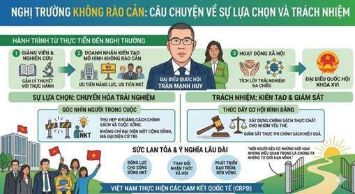 Và với những người như ông Trần Mạnh Huy, nghị trường không chỉ là điểm đến, mà còn là nơi để những trải nghiệm cá nhân được chuyển hóa thành tiếng nói chính sách – góp phần xây dựng một xã hội bao trùm, nơi mọi người đều có cơ hội tham gia và đóng góp.