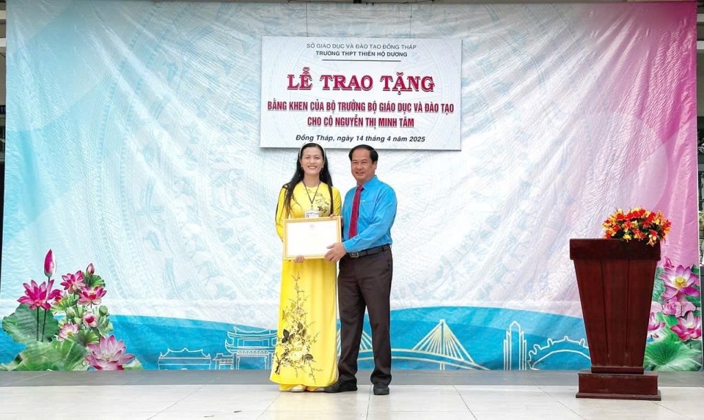 | Một số khen thưởng, thành tích tiêu biểu: Năm 2025 – Bằng khen của Bộ trưởng Bộ Giáo dục và Đào tạo – Tấm gương sáng về tinh thần vượt khó vươn lên trong giảng dạy và giáo dục (QĐ 837/QĐ-BGDĐT, 31/3/2025). – Bằng khen của Chủ tịch UBND tỉnh Đồng Tháp – Đóng góp tiêu biểu trong xây dựng, phát triển tỉnh Đồng Tháp giai đoạn 1975–2025 (QĐ 96/QĐ-UBND-KT, 27/4/2025). Năm 2024 – Giải thưởng “Dân vận khéo” tỉnh Đồng Tháp lần thứ I – Ban Chấp hành Đảng bộ tỉnh Đồng Tháp. – Chứng nhận điển hình tiên tiến của Ban Tuyên giáo Trung ương – Biểu dương tại chương trình “Học tập và làm theo tư tưởng, đạo đức, phong cách Hồ Chí Minh” khu vực phía Nam. – Bằng khen của Hội Cựu giáo chức Việt Nam – Trưởng nhóm thiện nguyện Nhất Tâm, có thành tích xuất sắc trong hoạt động hội. – Kỷ niệm chương “Vì sự nghiệp xây dựng và phát triển Hội Cựu giáo chức Việt Nam”. Năm 2022 – Giải thưởng Tình nguyện Quốc gia – Ban Chấp hành Trung ương Đoàn TNCS Hồ Chí Minh. – Giải thưởng KOVA – Hạng mục “Sống đẹp” – Gương sáng vượt khó, cống hiến cho giáo dục và công tác xã hội. – Chiến sĩ thi đua cấp cơ sở – Sở Giáo dục và Đào tạo Đồng Tháp (QĐ 820/QĐ-SGDĐT, 24/8/2022). – Bằng khen của Liên đoàn Lao động tỉnh Đồng Tháp – Thành tích xuất sắc trong phong trào thi đua và hoạt động công đoàn (QĐ 140/QĐ-LĐLĐ, 23/9/2022). Năm 2021 – Bằng khen của UBND tỉnh Đồng Tháp – Đóng góp tích cực trong xây dựng, phát triển tỉnh (QĐ 76/QĐ-UBND-KT, 25/3/2021). – Bằng khen của Liên đoàn Lao động tỉnh Đồng Tháp – Thành tích trong phong trào “Nỗ lực vượt khó, sáng tạo, quyết tâm chiến thắng đại dịch Covid-19” (QĐ 237/QĐ-LĐLĐ, 26/10/2021). – Bằng khen Thanh niên tình nguyện – Tỉnh Đoàn Đồng Tháp. Năm 2020 – Bằng khen của UBND tỉnh Đồng Tháp – Thành tích xuất sắc trong phong trào thi đua yêu nước giai đoạn 2015–2020 (QĐ 316/QĐ-UBND-KT, 9/9/2020). – Bằng khen phòng chống dịch Covid-19 – Liên đoàn Lao động tỉnh Đồng Tháp (QĐ 83/QĐ-LĐLĐ, 11/5/2020). – Thanh niên tiên tiến làm theo lời Bác toàn quốc lần thứ VI – Trung ương Đoàn TNCS Hồ Chí Minh. – Bằng khen “Tỏa sáng nghị lực Việt” – Ủy ban Quốc gia về NKT & Bộ LĐ-TB&XH. – Chiến sĩ thi đua cấp cơ sở – Sở GD&ĐT Đồng Tháp (QĐ 731/QĐ-SGDĐT, 30/9/2020). Sáng kiến và phong trào tiêu biểu – 2024: Biện pháp tiếp thêm động lực, tinh thần cho học sinh lớp 12 trước kỳ thi TN THPT. – 2022: Biện pháp rèn luyện kỹ năng sống, tạo thói quen lành mạnh cho học sinh khối 10. – 2020: Phối hợp công đoàn nâng cao hiệu quả hoạt động thiện nguyện. – Đoàn viên Công đoàn xuất sắc 5 năm liên tục (2020–2024). – Vận động gần 100 triệu đồng hỗ trợ giáo viên và học sinh có hoàn cảnh khó khăn. |
