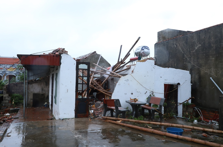 Ngôi nhà ông K. (1934); bà N (1938) tại thôn Phú Bình tan hoang sau cơn lốc làm nhà sập khiến 2 người chết 1 người bị thương.