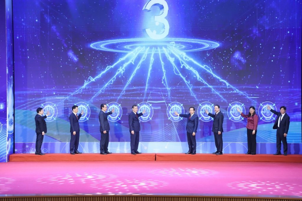 Các đại biểu thực hiện nghi thức ấn nút khởi động chương trình