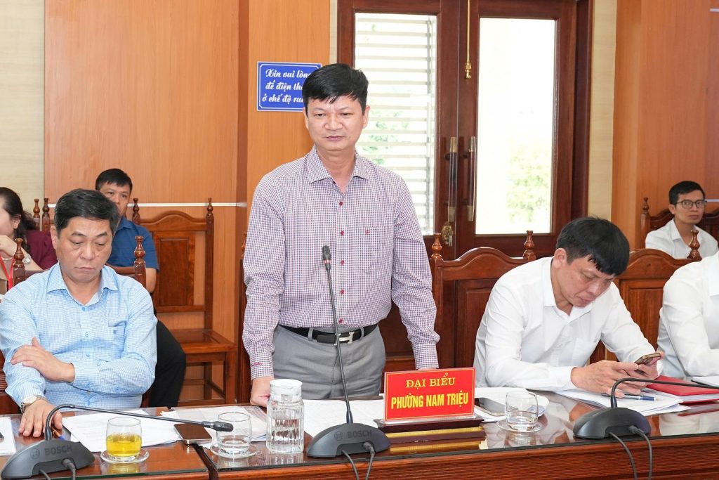 Lãnh đạo phường Nam Triệu báo cáo tại cuộc họp