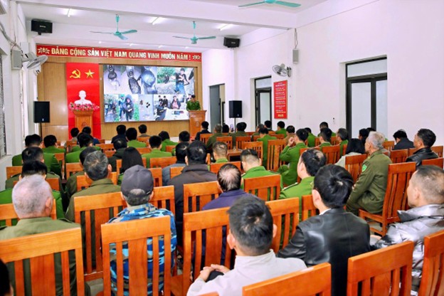 Đồng chí Nguyễn Mạnh Nghĩa, Phó Bí thư Đảng ủy – Chủ tịch UBND phường Nam Triệu ghi nhận thành tích của Công an phường