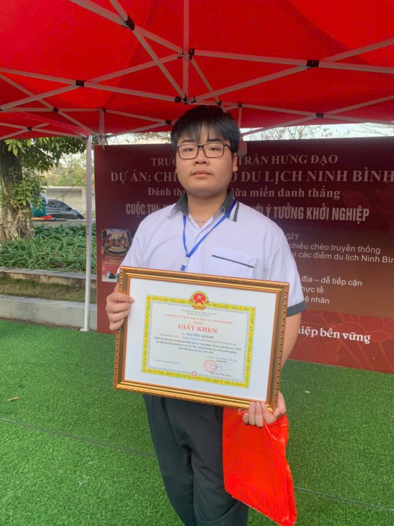 Dự án của em Nguyễn Trường Khánh, xuất sắc đạt Giải Nhất tại Ngày hội khởi nghiệp và Cuộc thi “Học sinh phổ thông với ý tưởng khởi nghiệp” tỉnh Ninh Bình năm học 2025–2026, thuộc lĩnh vực công nghệ chế tạo, trí tuệ nhân tạo và STEM. Dự án của em được Hội đồng giám khảo đánh giá cao bởi tính sáng tạo, khả năng ứng dụng thực tiễn cũng như tư duy khoa học rõ ràng, mạch lạc.