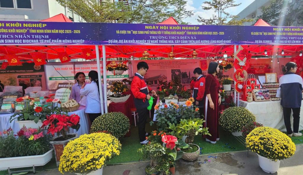 Ngày 30/01/2026, trong khuôn khổ Ngày hội khởi nghiệp và Cuộc thi “Học sinh phổ thông với ý tưởng khởi nghiệp” tỉnh Ninh Bình năm học 2025–2026, khu vực trưng bày các dự án khởi nghiệp của học sinh đã trở thành điểm nhấn nổi bật, thu hút sự quan tâm của đông đảo đại biểu, các thầy cô giáo, phụ huynh và nhân dân trên địa bàn tỉnh.