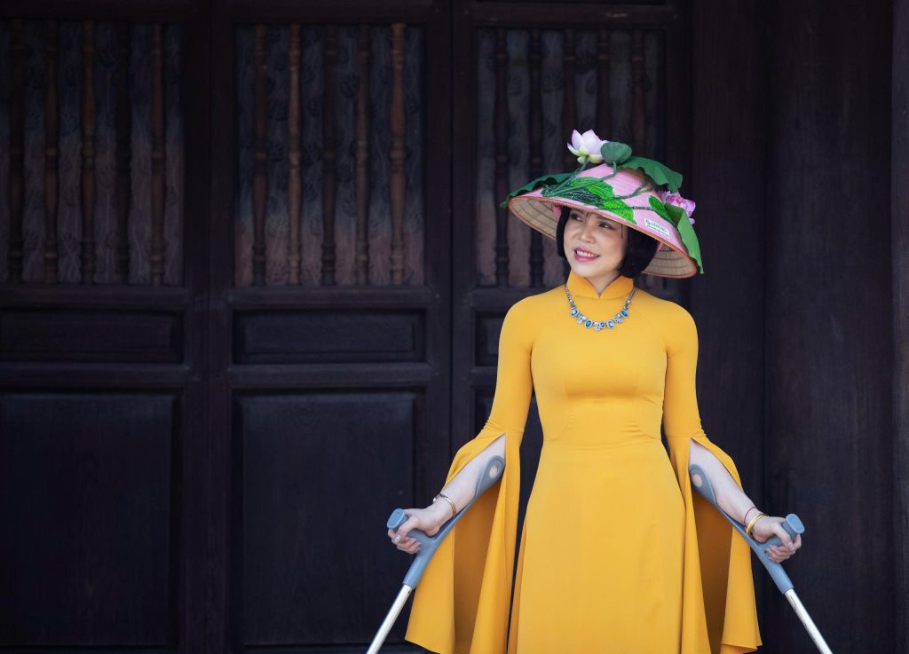 Mẫu nón hoa với khoa khôi Vầng trăng khuyết Bế thị Băng chuẩn bị cho chương trình “Vietnam Disability Fashion Show”