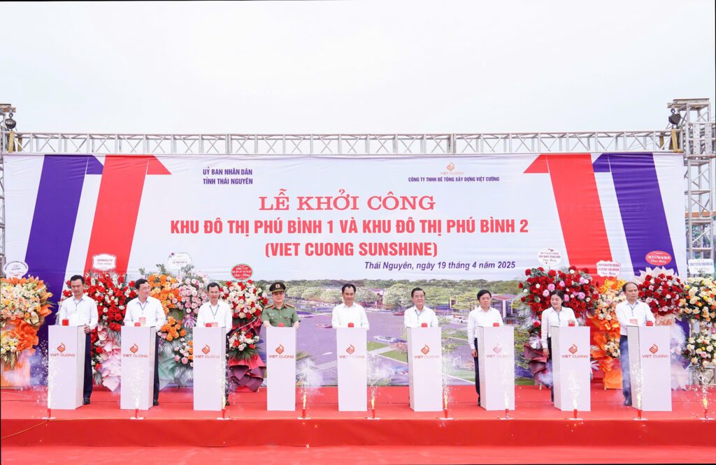 Các đại biểu thực hiện nghi thức chính thức khởi công Khu đô thị Phú Bình 1 và Phú Bình 2.
