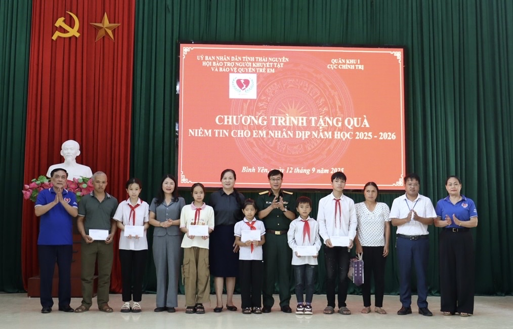 Nhân dịp năm học mới, cùng với niềm vui chung của cả nước, sáng 12-9, Hội Bảo trợ người khuyết tật và bảo vệ quyền trẻ em tỉnh phối hợp với Cục Chính trị Quân khu I tổ chức trao học bổng “Niềm tin cho em” cho các cháu học sinh có hoàn cảnh đặc biệt tại 4 xã: Bình Yên, Bình Thành, Kim Phượng và Phú Đình. Cùng dự chương trình có đại diện lãnh đạo Ban Tuyên giáo và Dân vận Tỉnh ủy, Hội Khuyến học tỉnh và lãnh đạo 2 xã sở tại: Bình Yên và Bình Thành.