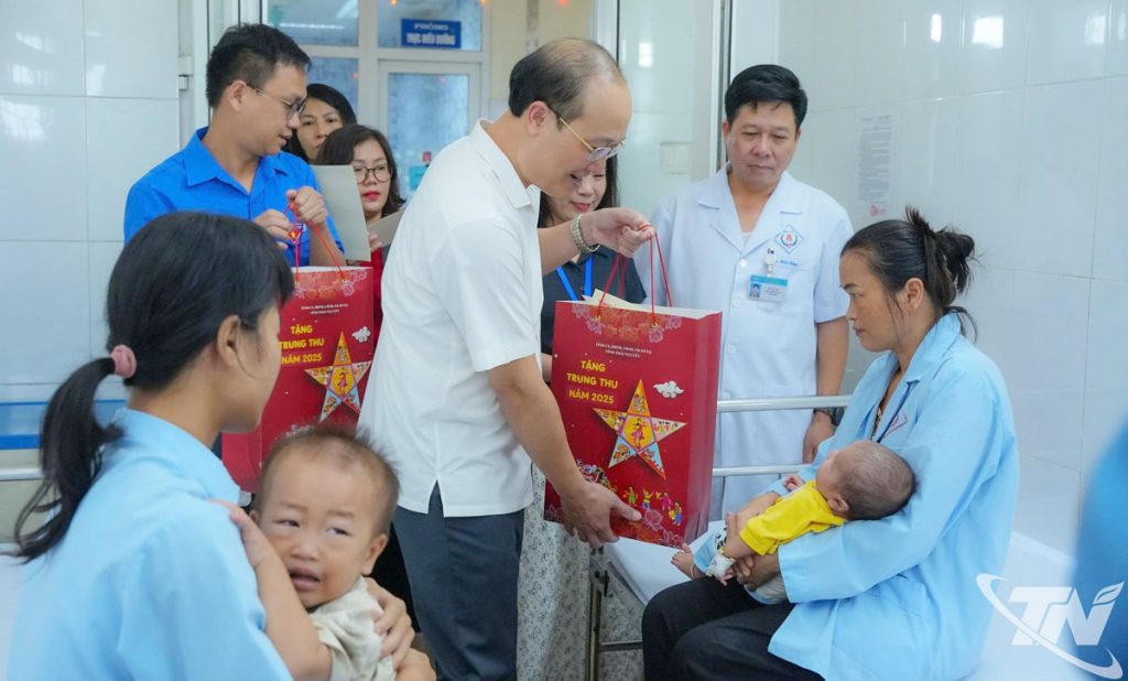 Lãnh đạo sở Y tế và Bệnh viện A Thái Nguyên tặng quà cho các cháu