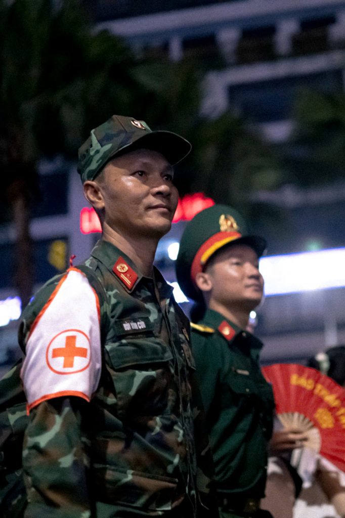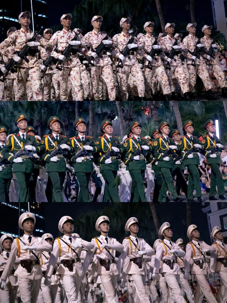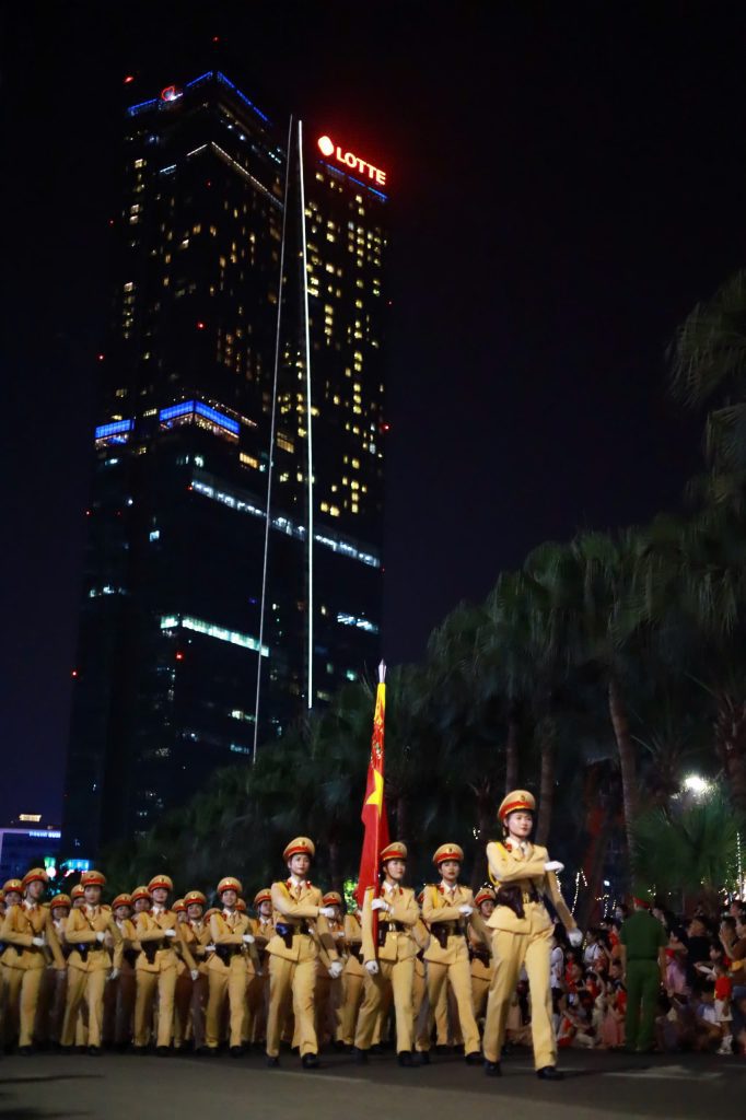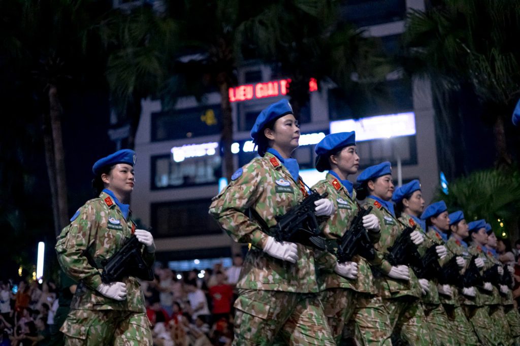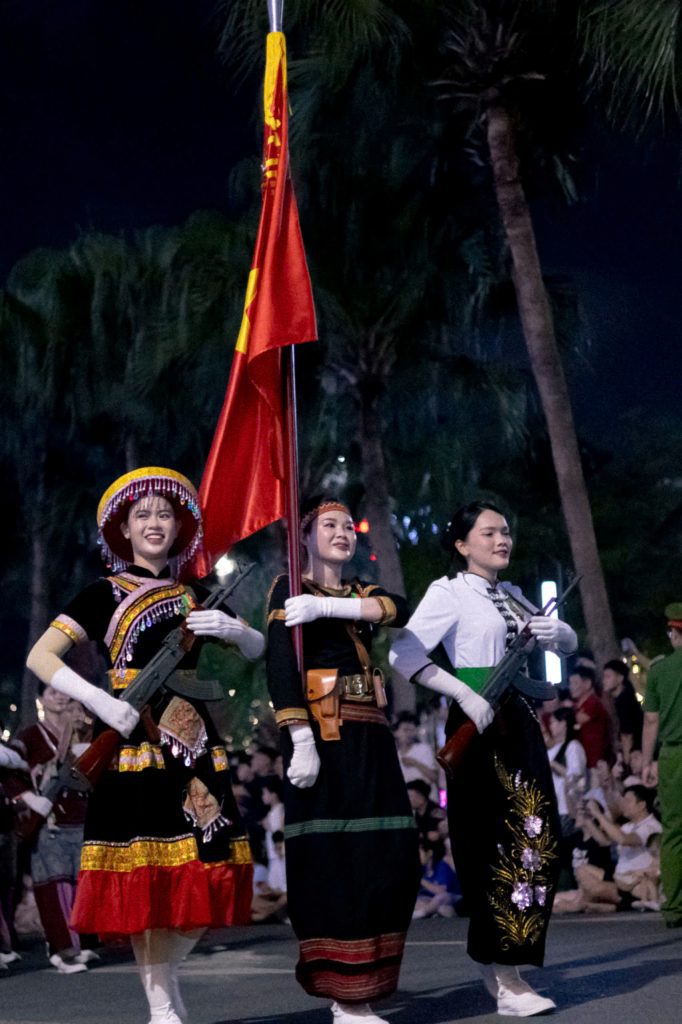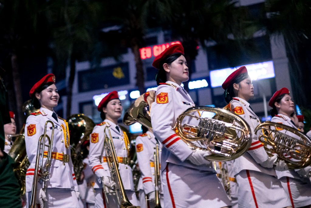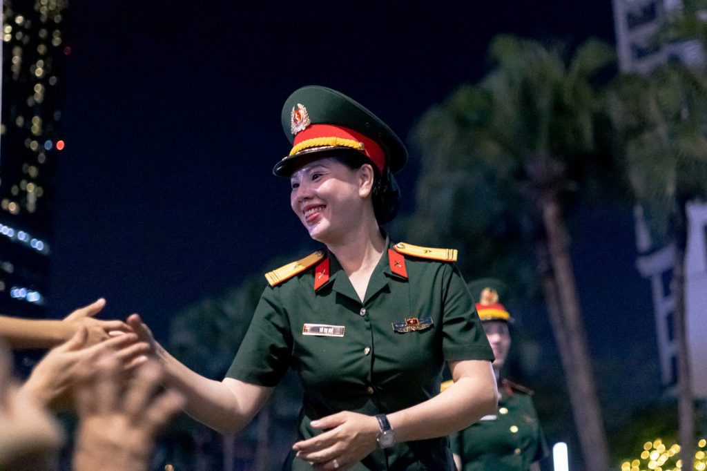 Giữa bước chân hùng tráng và khí thế hào hùng, những nụ cười rạng rỡ vẫn hiện hữu, lan tỏa niềm tin và tự hào.