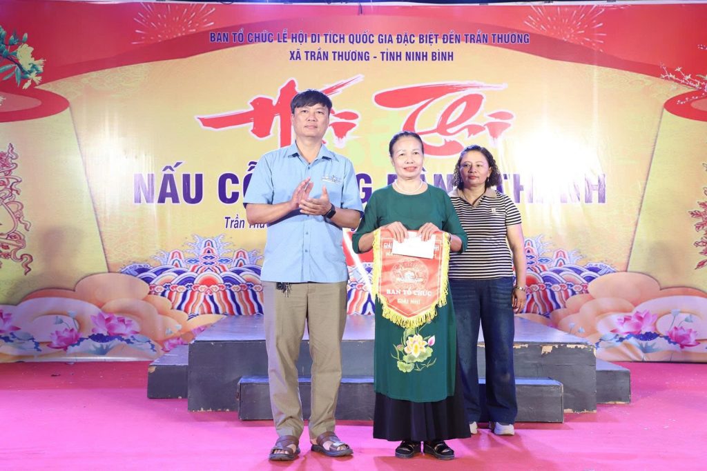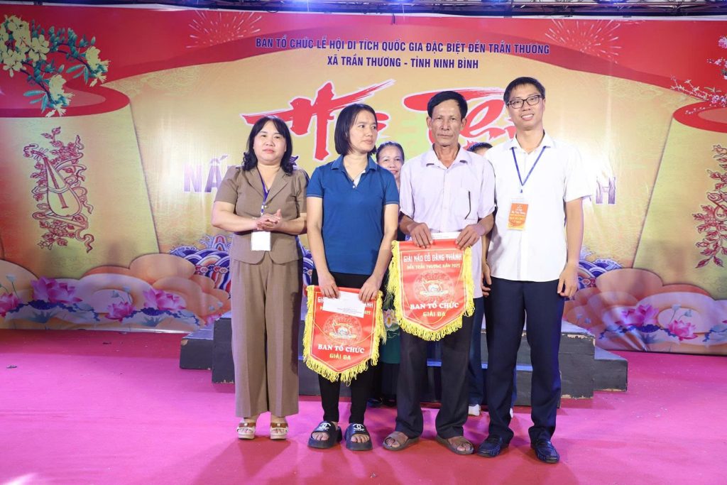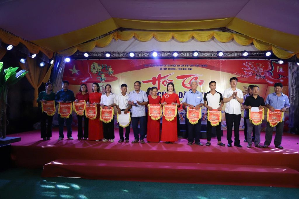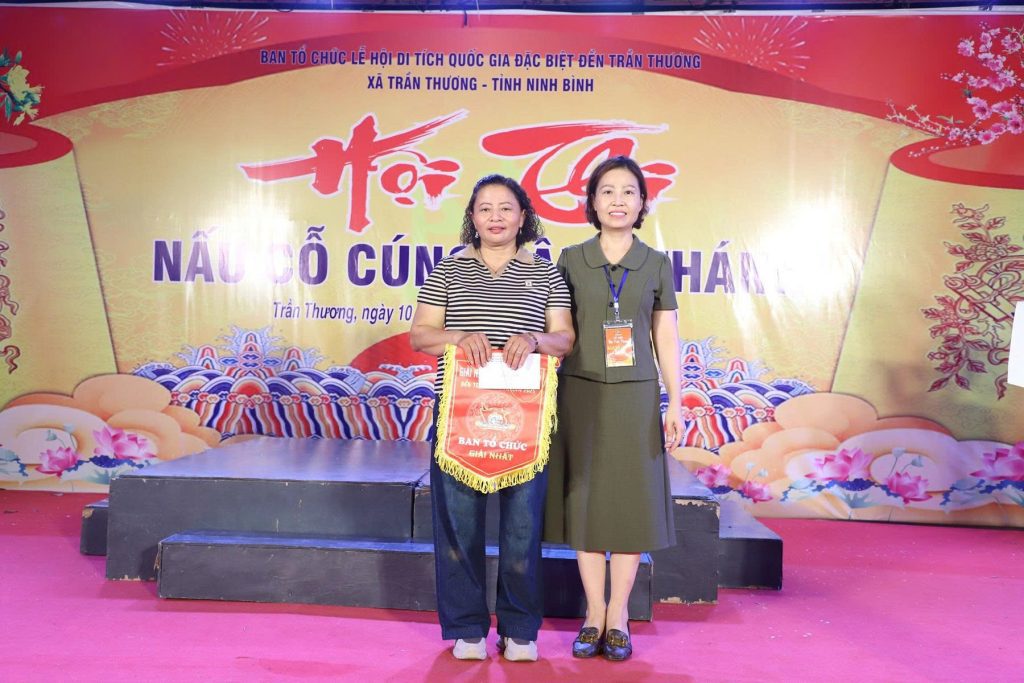 Bà Nguyễn Thị Quyên Chủ tịch UBMTTQ xã và ông Lê Anh Tuấn phó Chủ tịch UBND xã Trần Thương trao giải ba cho các đội đạt giải trong phần thi nấu cỗ.