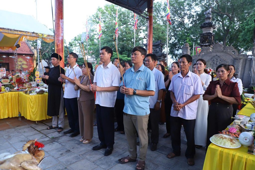 Các đại biểu đại diện chính quyền địa phương và nhân dân thành kính dâng hương tưởng niệm Hưng Đạo Đại Vương Trần Quốc Tuấn.