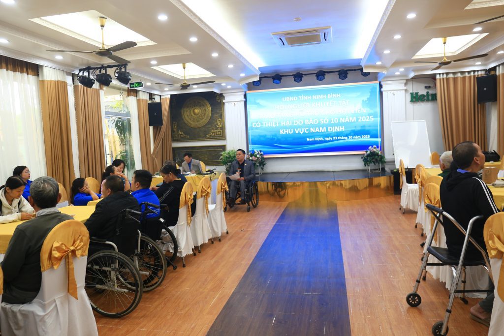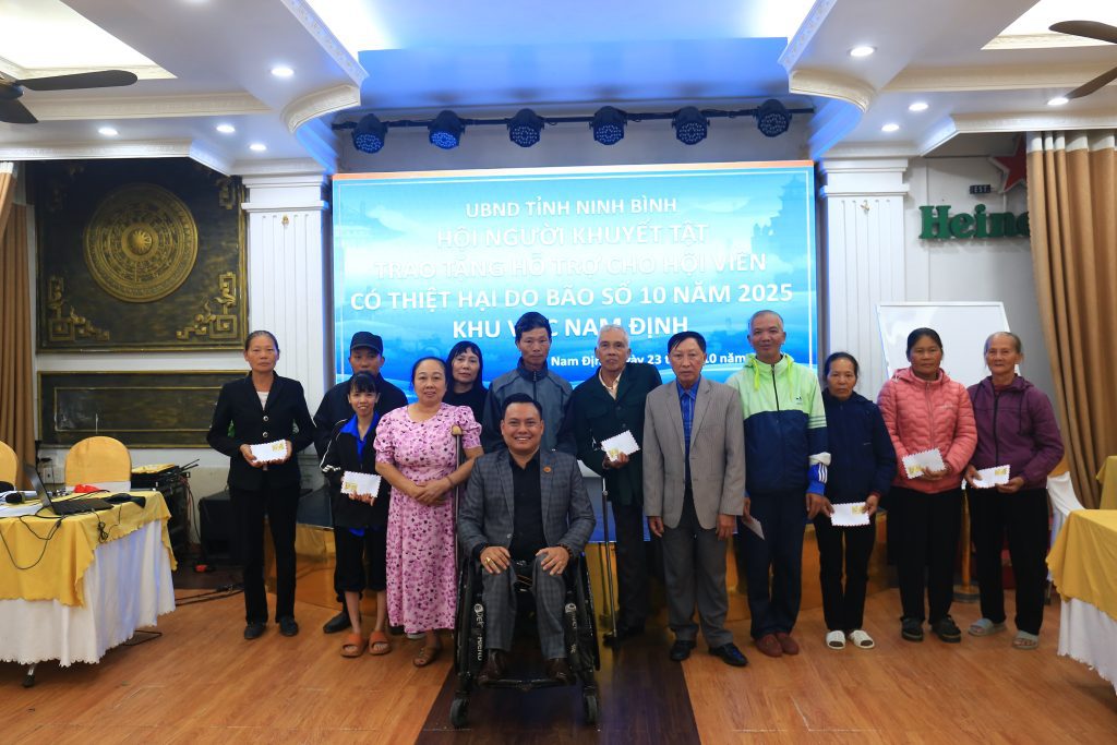Chiều 23/10, tại phường Nam Định, Hội Người khuyết tật tỉnh Ninh Bình phối hợp với các nhà hảo tâm tổ chức trao quà hỗ trợ hội viên người khuyết tật trên địa bàn các xã bị ảnh hưởng nặng nề bởi cơn bão số 10 (Bualoi).