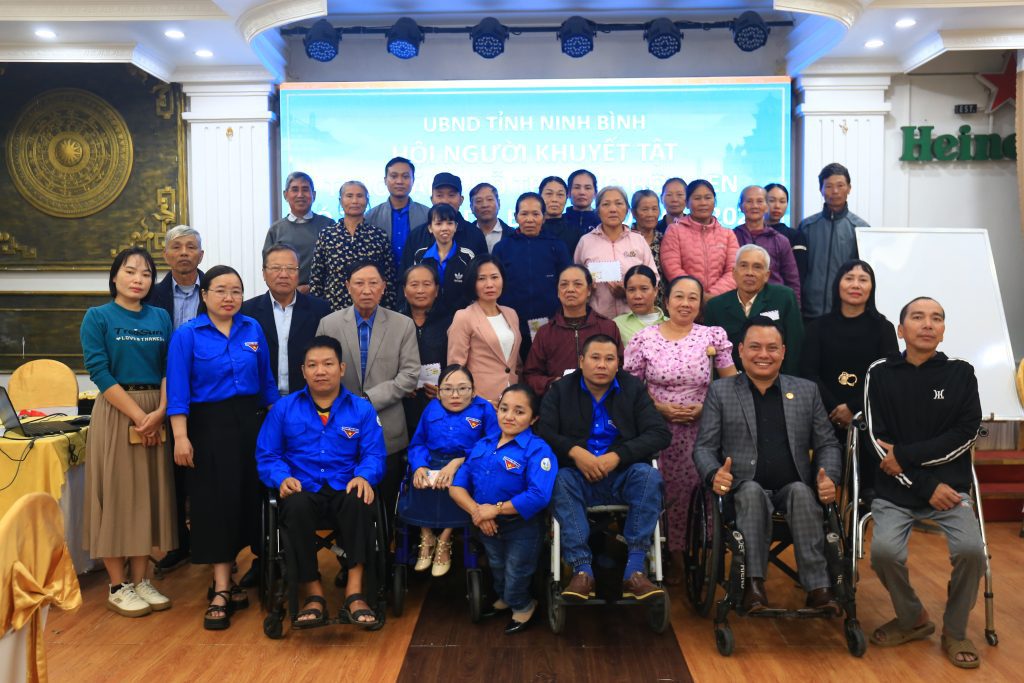 Hội Người Khuyết tật tỉnh Ninh Bình chụp ảnh lưu niệm cùng các hội viên tại lễ trao quà.