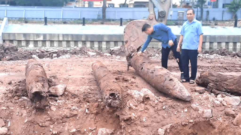 Trong quá trình thi công dự án nạo vét, kè chống sạt lở sông Vân (đoạn sát cầu Chà Là, phường Hoa Lư, tỉnh Ninh Bình), đơn vị thi công đã phát hiện 3 cọc gỗ nằm sâu trong lớp trầm tích lòng sông.