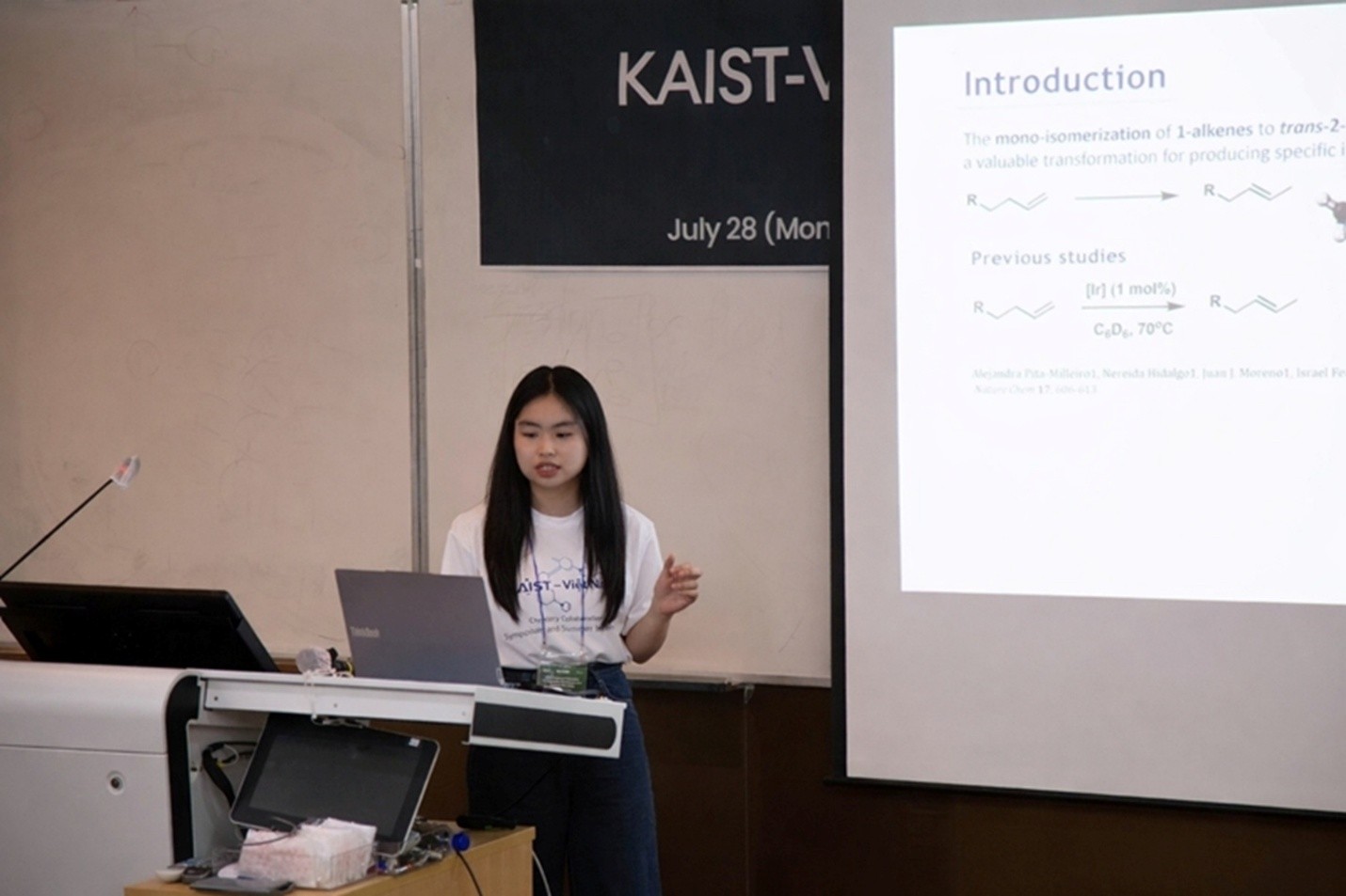 Trang trình bày nghiên cứu của mình trong chuyến trao đổi tại KAIST, Hàn Quốc.