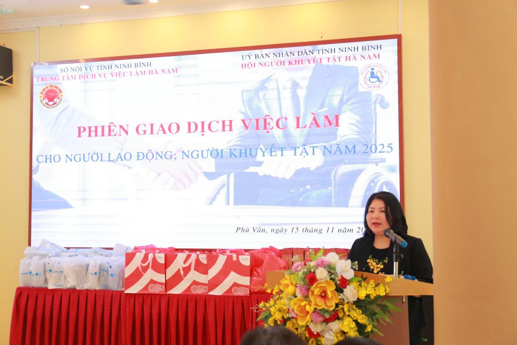Phó Giám đốc Sở Nội vụ tỉnh Ninh Bình Lê Thị Thu Hằng đánh giá, việc tổ chức phiên giao dịch việc làm cho người lao động và người khuyết tật mang đầy ý nghĩa, khẳng định sự nhân văn, sự chia sẻ và trách nhiệm cộng đồng đối với những người yếu thế; đồng thời đề nghị, thời gian tới, Trung tâm Dịch vụ việc làm Hà Nam cần tiếp tục đổi mới cách thức tổ chức, tăng cường kết nối, mở rộng thị trường lao động, đặc biệt quan tâm tới nhóm yếu thế, bảo đảm tính bền vững và lâu dài; chú trọng việc phối hợp với các cơ sở để dạy nghề cho người khuyết tật, giúp họ có một nghề để có thể khởi nghiệp như: Kỹ thuật cắt tỉa hoa, cắm hoa nghệ thuật, kỹ thuật livetream bán hàng… phù hợp với từng người và từng dạng khuyết tật của họ. Mong các doanh nghiệp tiếp tục đồng hành, chia sẻ trách nhiệm xã hội, coi việc tuyển dụng và sử dụng lao động khuyết tật, lao động yếu thế là một phần trong chiến lược phát triển nhân lực.