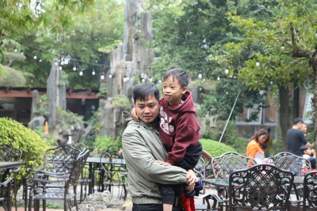 Anh Lê Văn Cường cùng cháu Lê Hiếu Nghĩa, sinh năm 2017 trú tại xã Nam Trực, Ninh Bình
